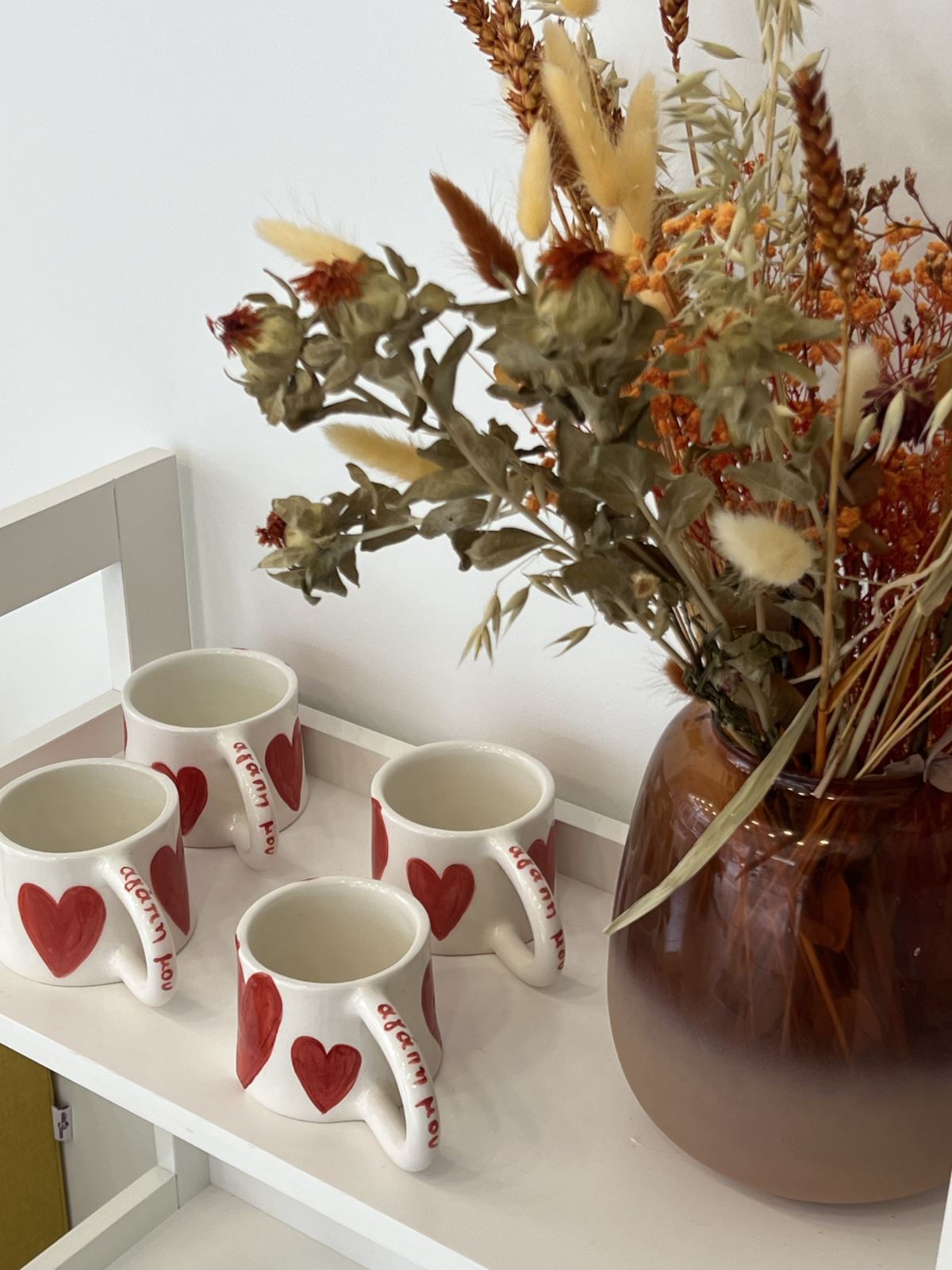 Ανακαλύψτε την ομορφιά της μοναδικότητας με αυτή τη χειροποίητη κεραμική κούπα, προσεκτικά ζωγραφισμένη στο χέρι από τις αγαπημένες μας συνεργάτιδες Ροσσίνα Μπουντούρη και Εύη Καπλάνη. Κάθε κούπα είναι μοναδική και γεμάτη αγάπη!❤️ Ιδανική για τον καφέ ή το τσάι σας, αλλά και ως ξεχωριστό δώρο.